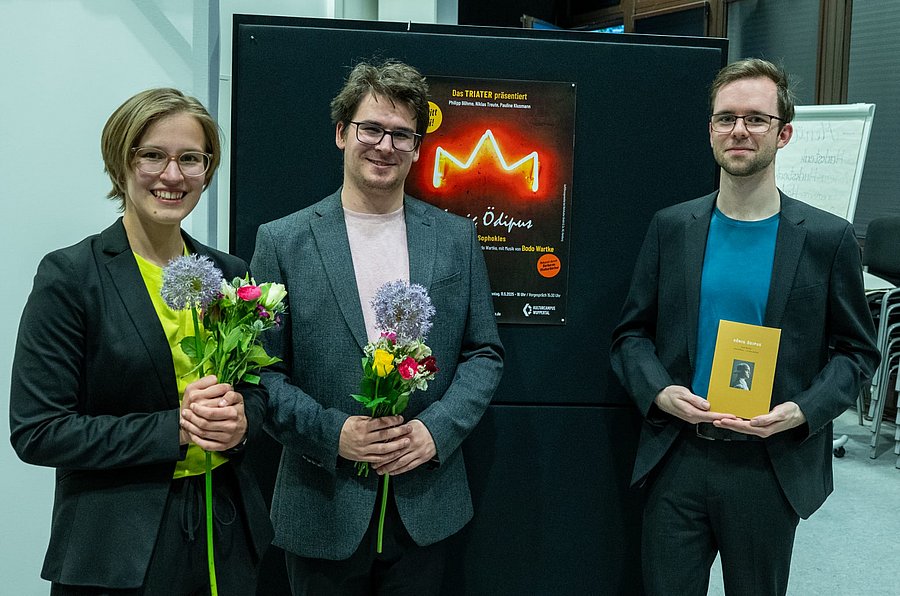 Am 10. und 11. Mai brachte das TRIATER-Ensemble – Phillipp Böhme, Pauline Klusmann & Niklas Treute – das Theaterstück König Ödipus von Bodo Wartke auf die Bühne der Universität.
