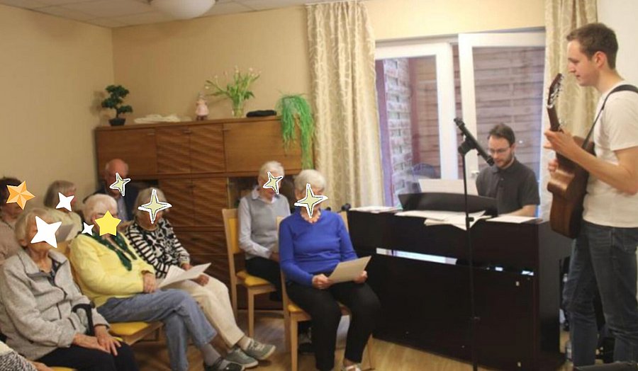 Am Ostermontag, 21. April 2025, luden sie die Bewohner*innen des Johanniter-Stifts Wuppertal-Vohwinkel zu einem musikalischen Nachmittag ein. Mit geistlicher und weltlicher Musik sowie persönlichen Erzählungen entstand ein lebendiger Austausch zwischen den Generationen. Ziel war es, älteren Menschen, die häufig allein leben, Gemeinschaft und Freude durch Musik zu schenken.